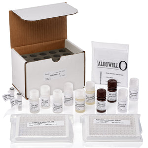 Albuwell O試劑盒包含在多達80個(ge) 重複的尿液或無細胞液體(ti) 相同溶液(血漿,血清,細胞培養(yang) 上清液等)中測定羊白蛋白所需的所有成分和試劑。